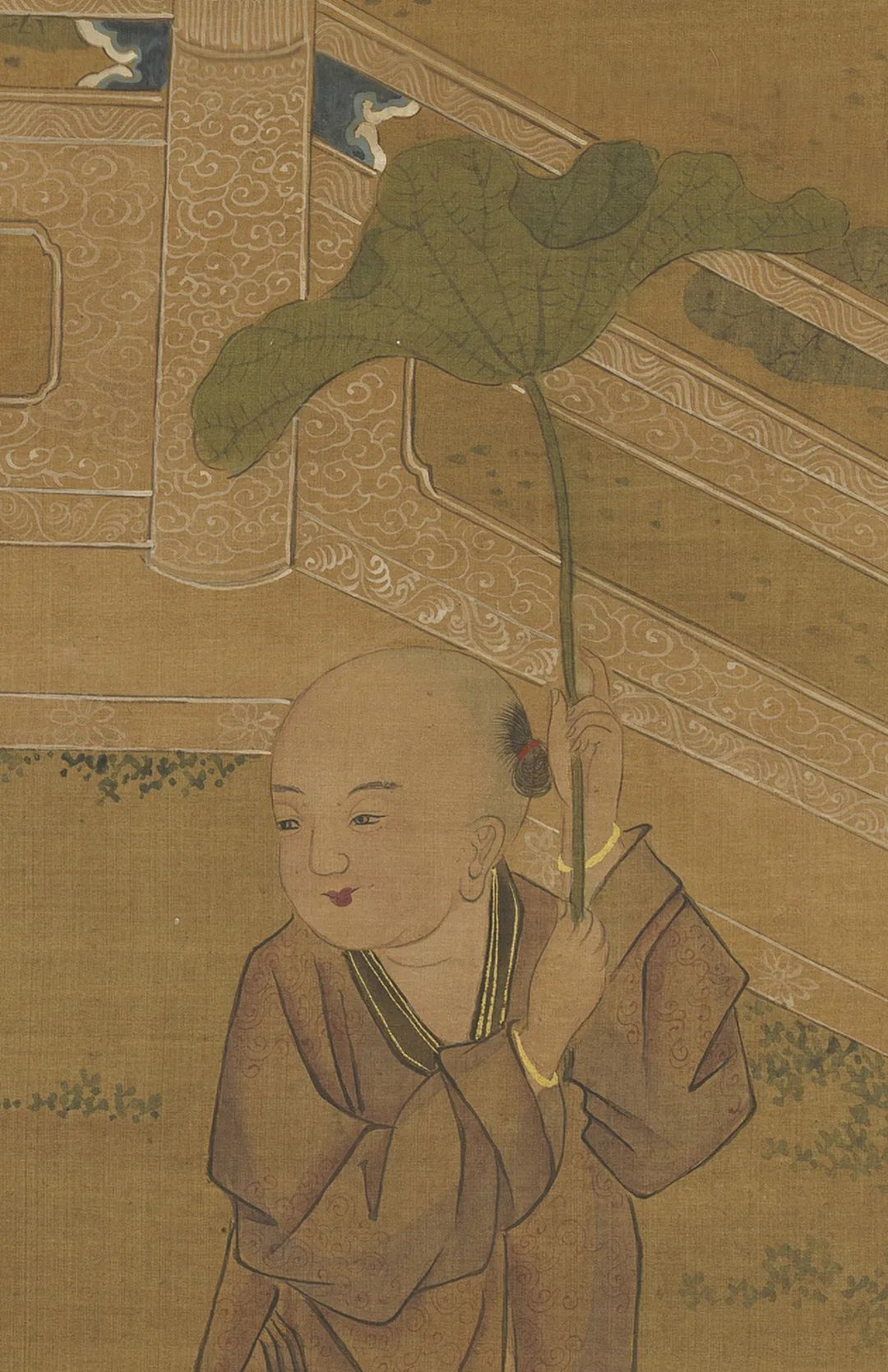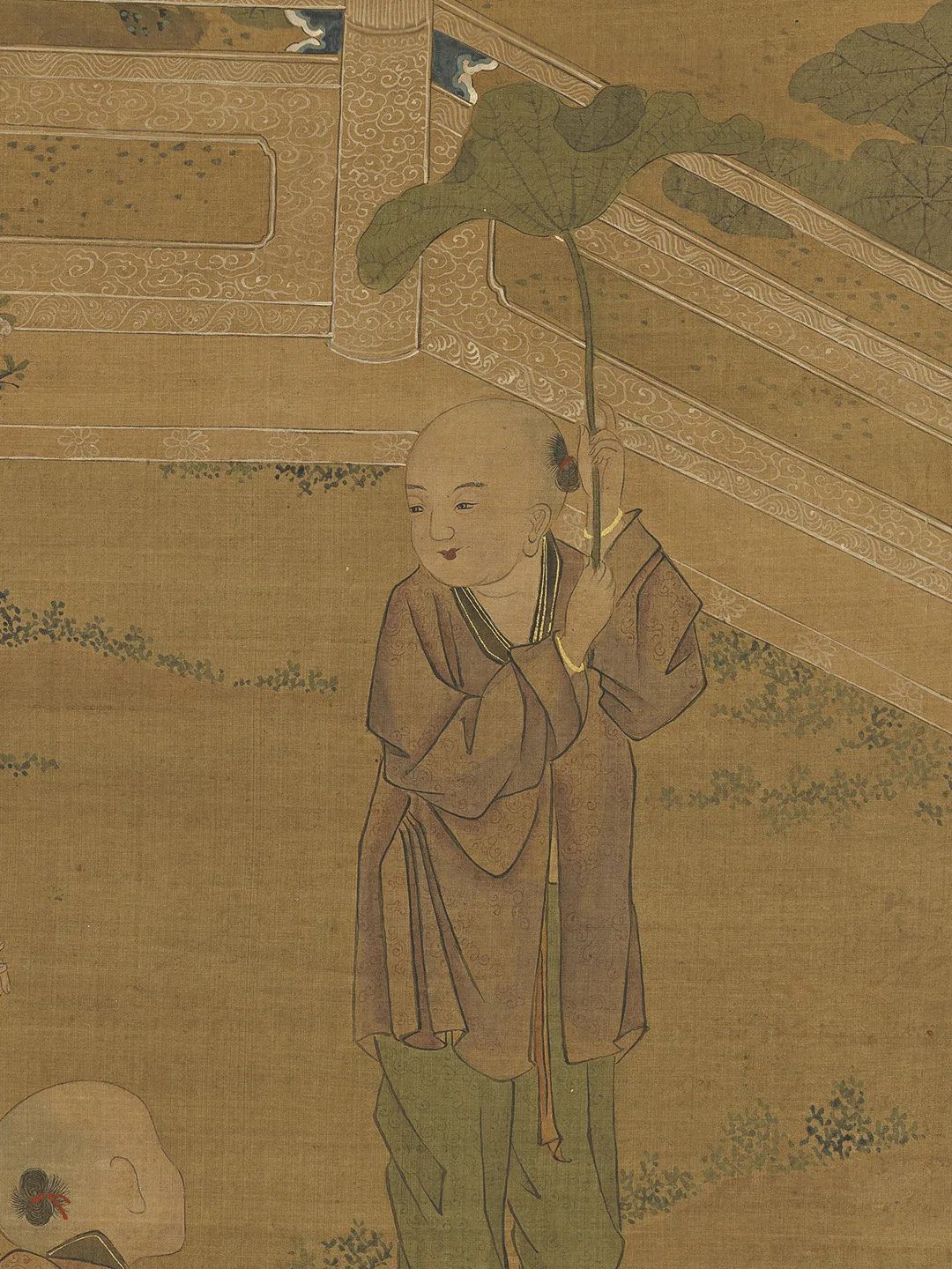 图中所绘均是端午故事,案上酒具当是为饮雄黄酒而备,擎荷孺子戴虎头符牌。《夏景戏婴图》原是清宫旧藏,其断代并不相配可靠,以东谈主物脸色和衣饰来看此幅作品应是出自明东谈主。图题“夏景”,是五月乃仲夏之月也,因此常把它嵌在夏季行事中。